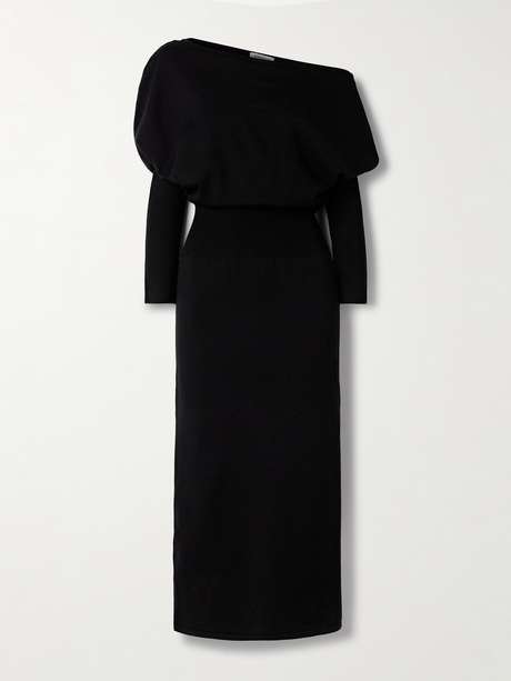 SIMKHAI's 'Janese' dress is designed with a fitted panel along the waist that tempers its otherwise relaxed shape. Made from black wool-blend, it has a draped neckline that hangs elegantly off one shoulder and a split midi hem.
