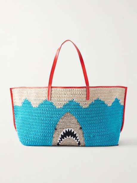 STAUD's leather-trimmed 'Christos' tote is embellished with scores of sequins depicting a playful shark motif. Crocheted in tones evocative of a beach scene, it comes in a large, spacious shape that'll hold all your daily essentials, plus a removable zipped pouch for smaller items.