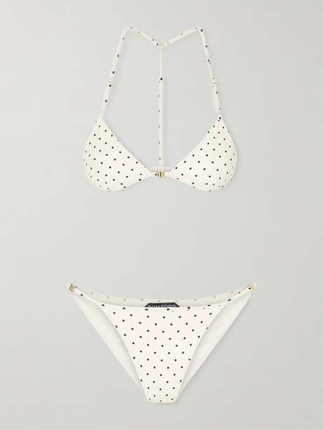 EXCLUSIVE AT NET-A-PORTER. TOM FORD’s bikini is printed with subtle polka dots and designed in a classic triangle silhouette. The top is finished with polished metal hardware at the back, adding a refined touch. The low-rise briefs offer minimal coverage—perfect for poolside lounging.
