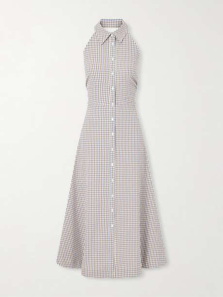 VERONICA BEARD Mackey checked cotton-seersucker midi dress