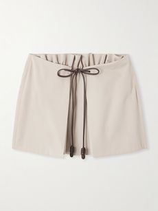 Leather-trimmed layered cotton and silk-blend mini skirt