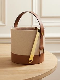 Garrett leather-trimmed canvas and glass ice bucket