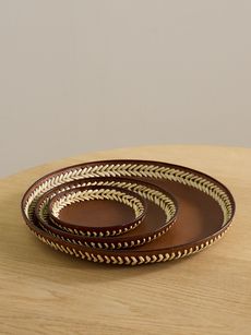 Set of three whipstitched leather trays