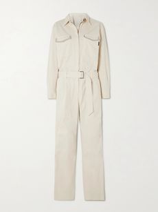 Belted bead-embellished cotton-blend drill jumpsuit