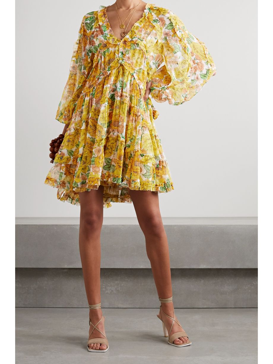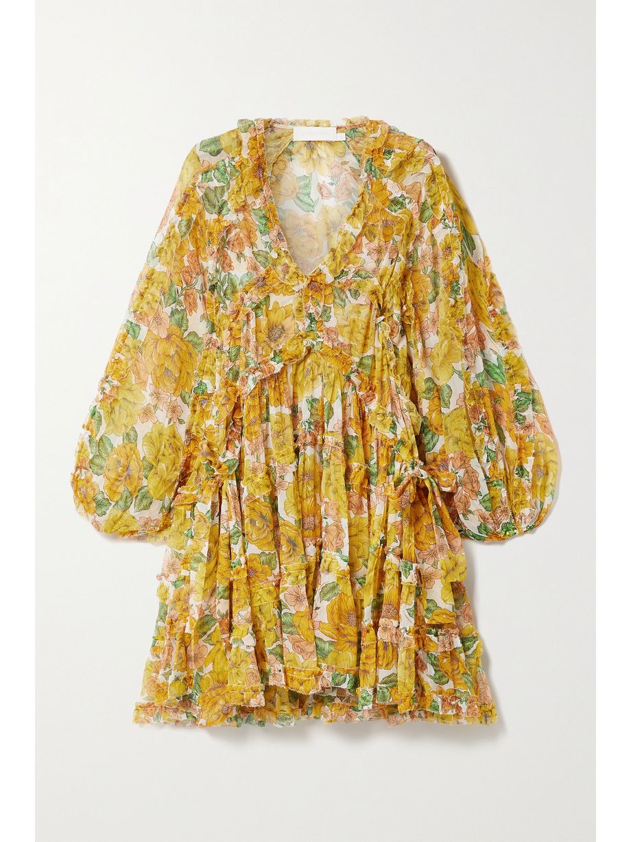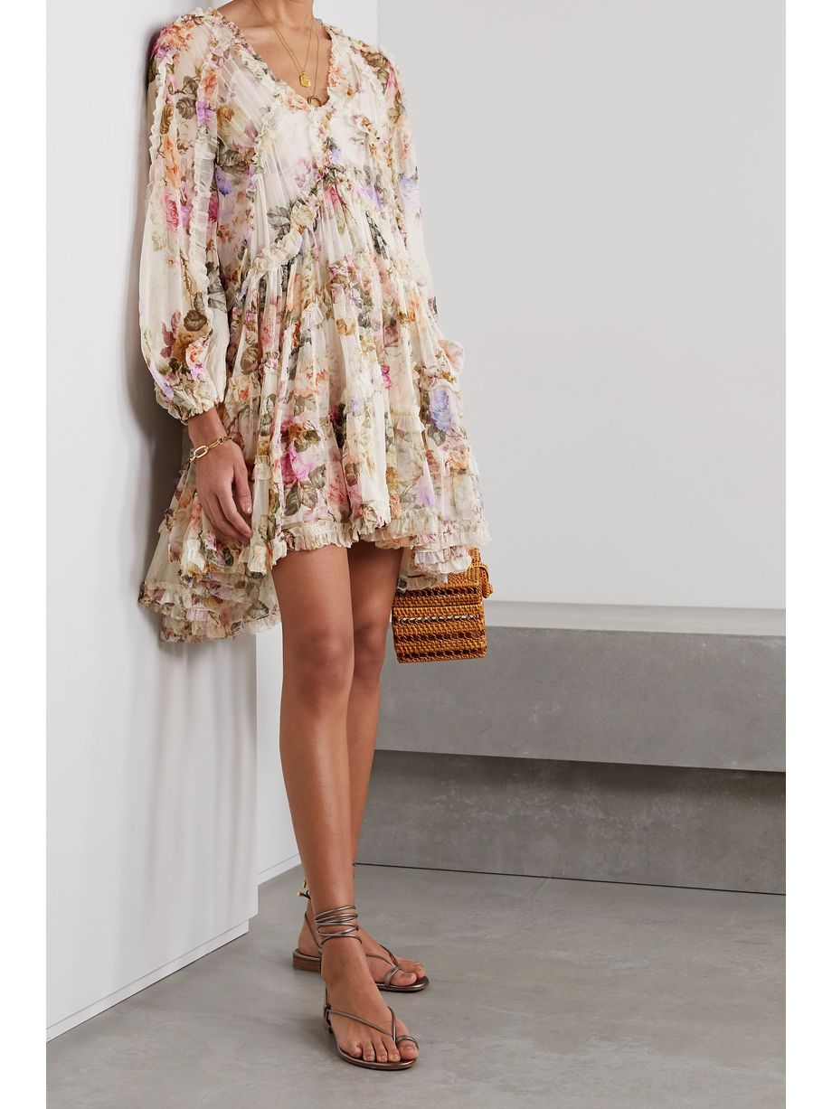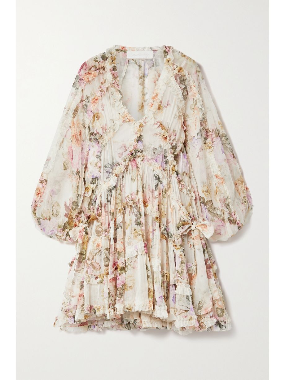 Poppy ruffled floral-print silk-crepon mini dress