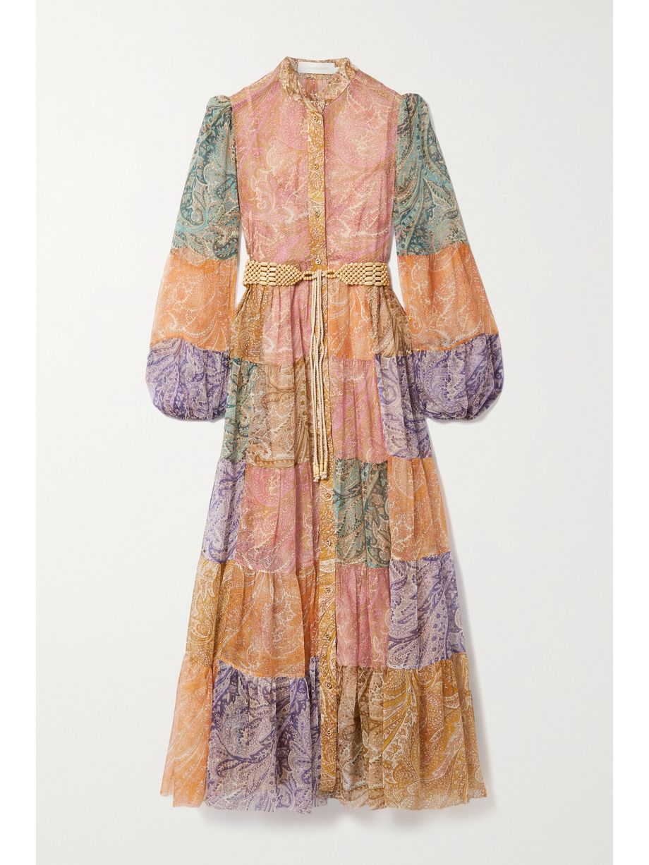 Brighton belted patchwork paisley-print silk-crepon maxi shirt dress