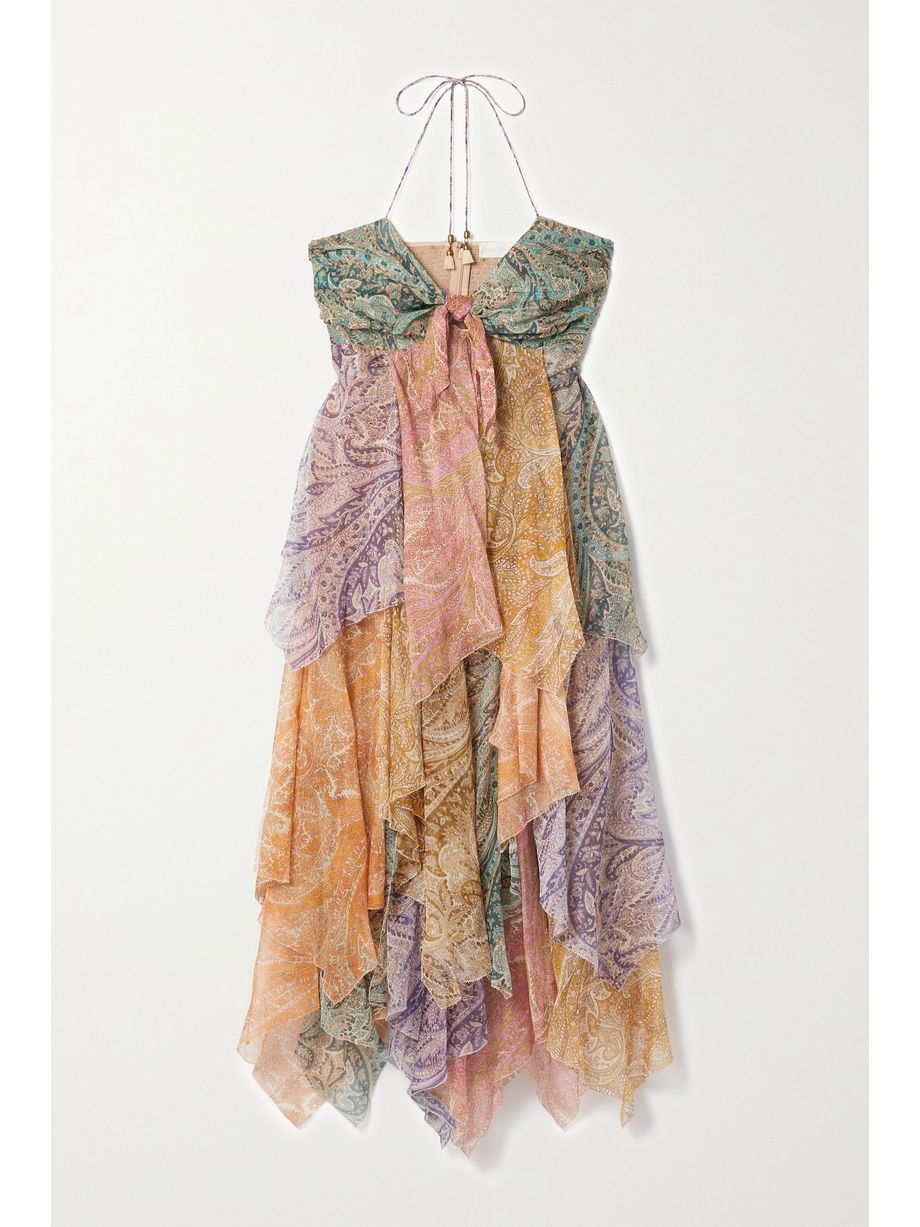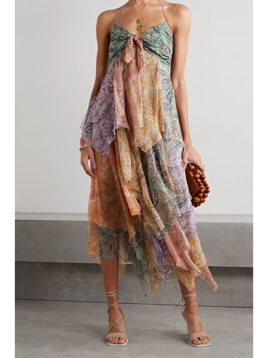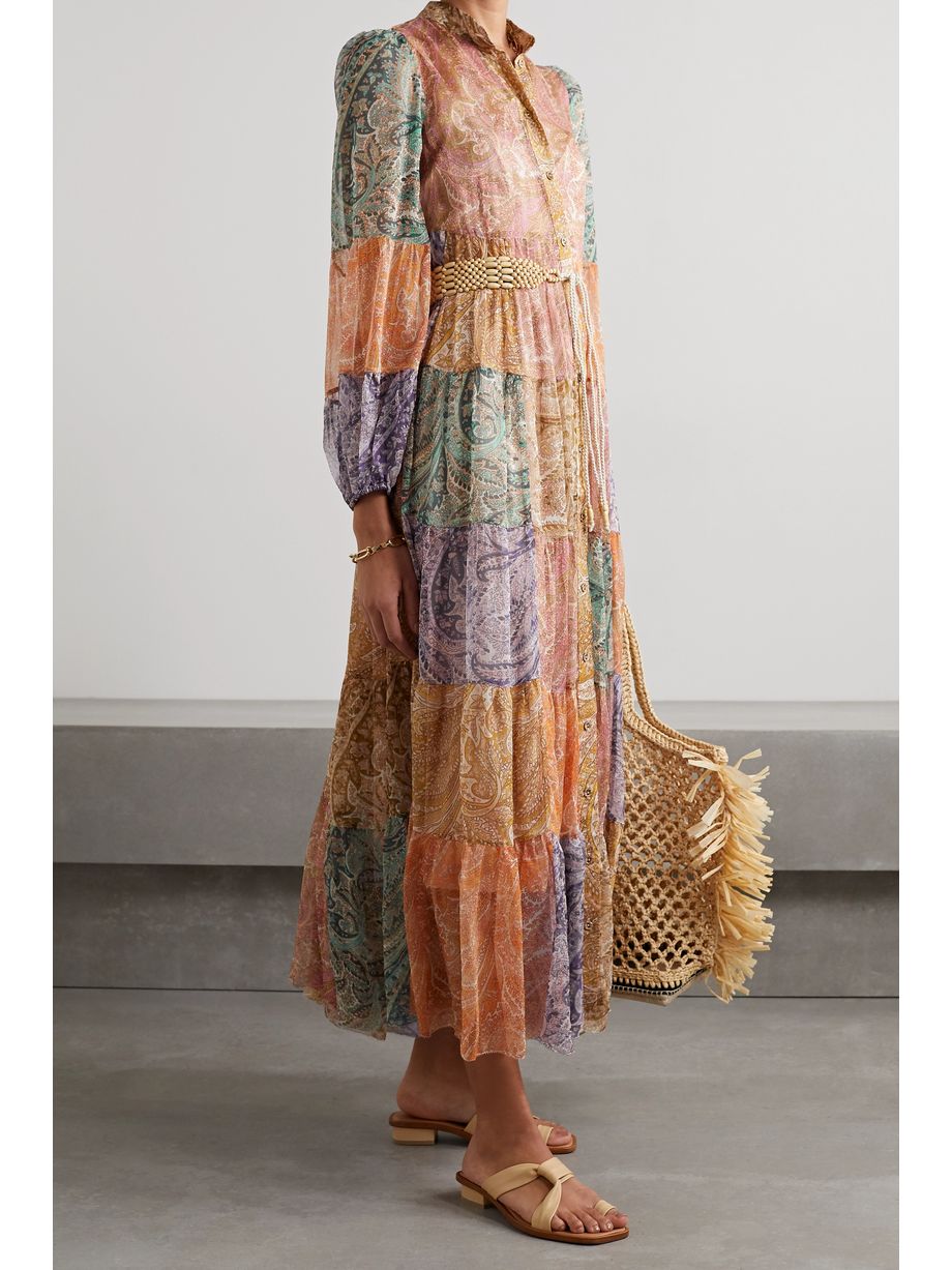 Brighton tiered patchwork paisley-print silk-crepon midi dress