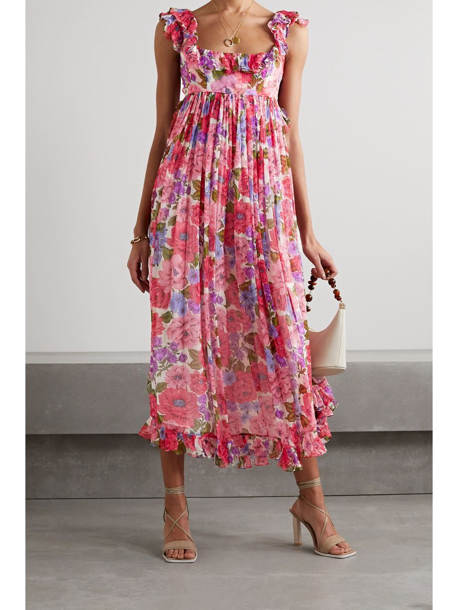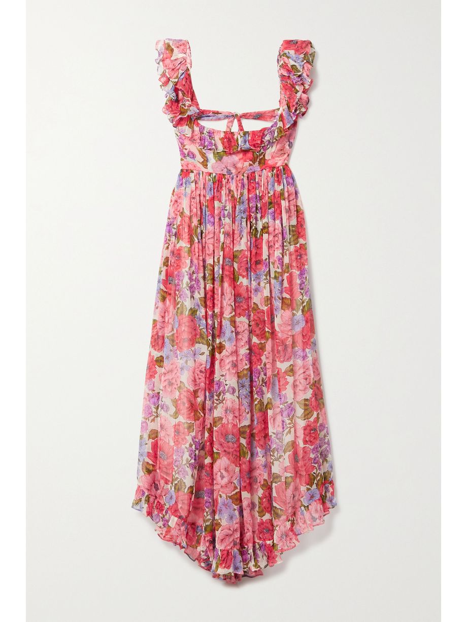 Poppy open-back ruffled floral-print silk-crepon midi dress