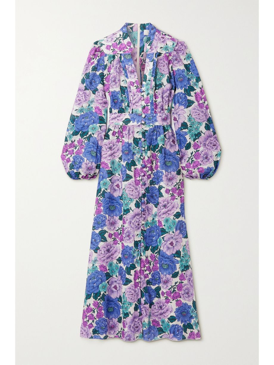 Ladybeetle gathered floral-print silk-chiffon midi dress