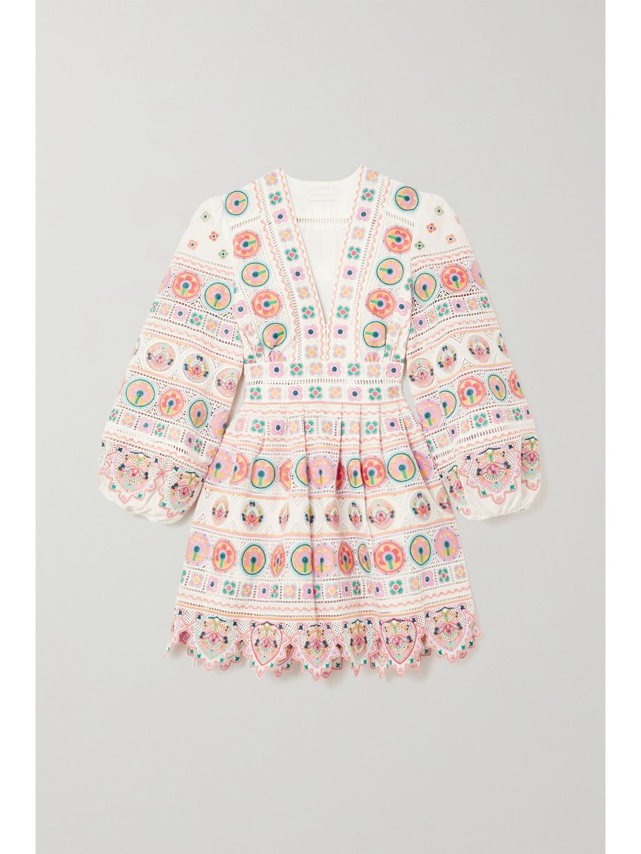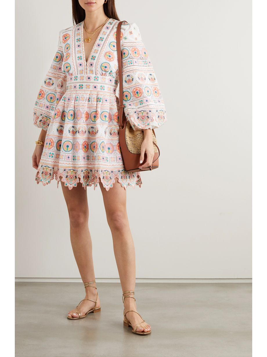 Brighton scalloped embroidered cotton mini dress