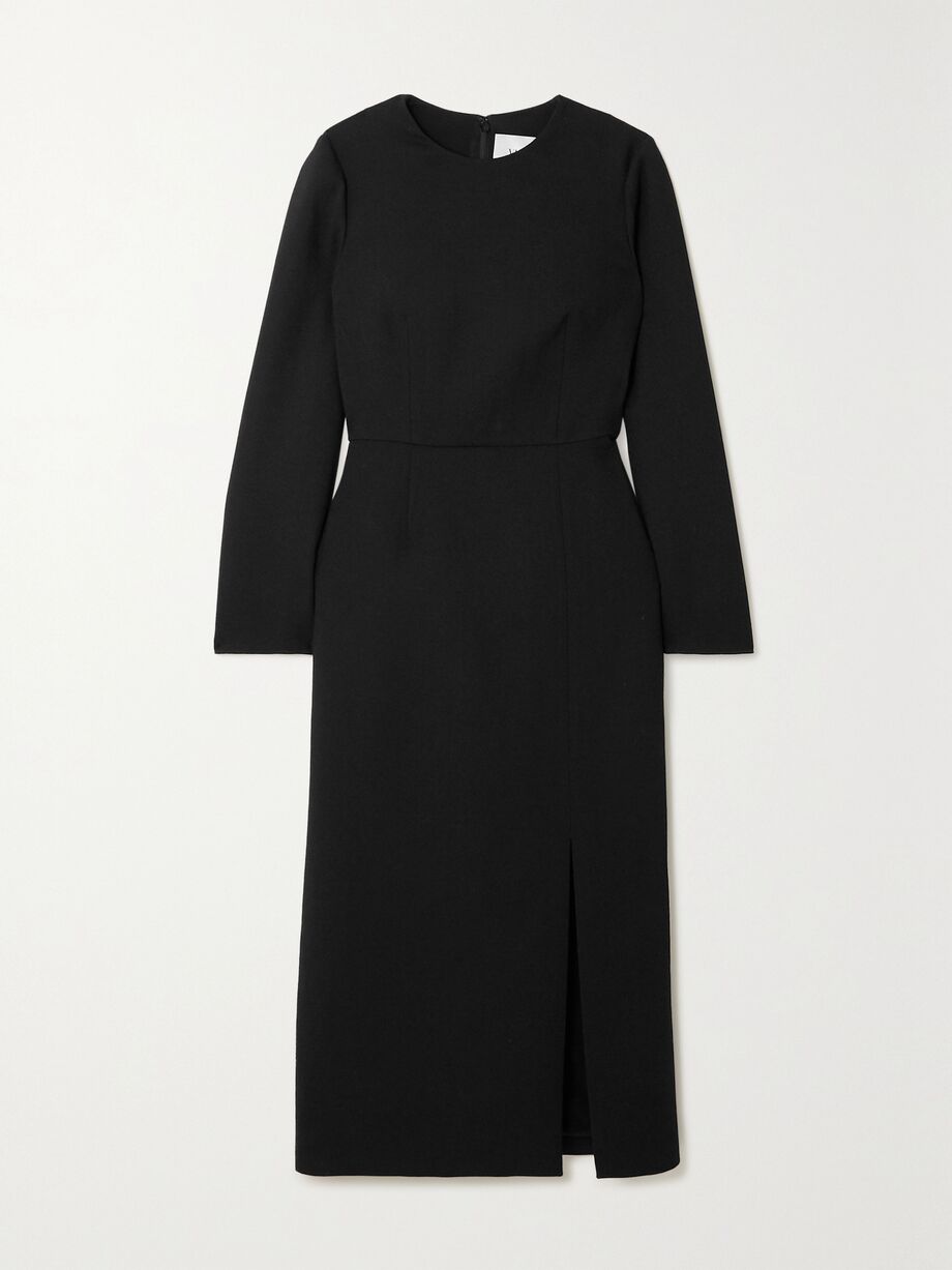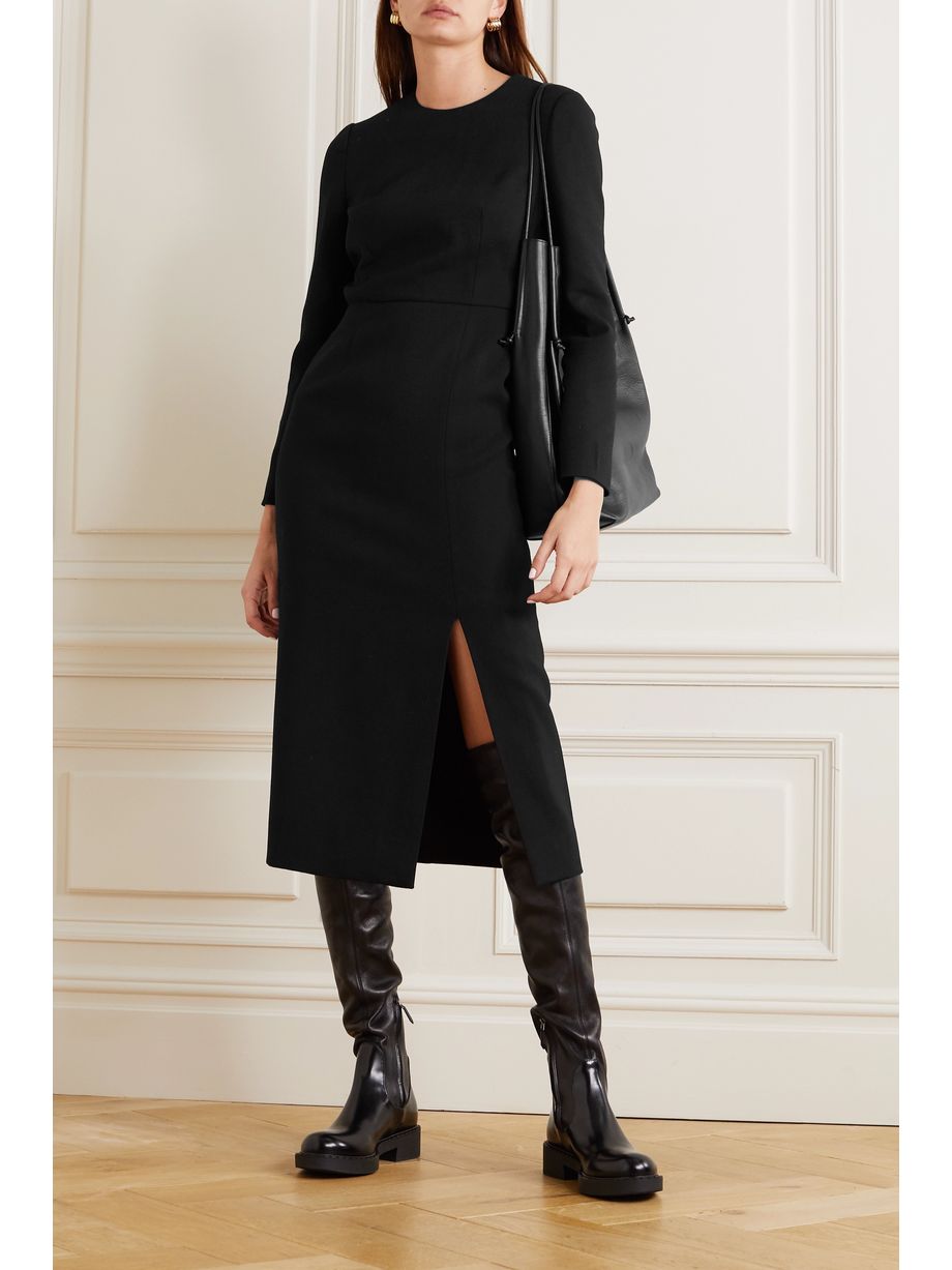 Wool-blend crepe midi dress