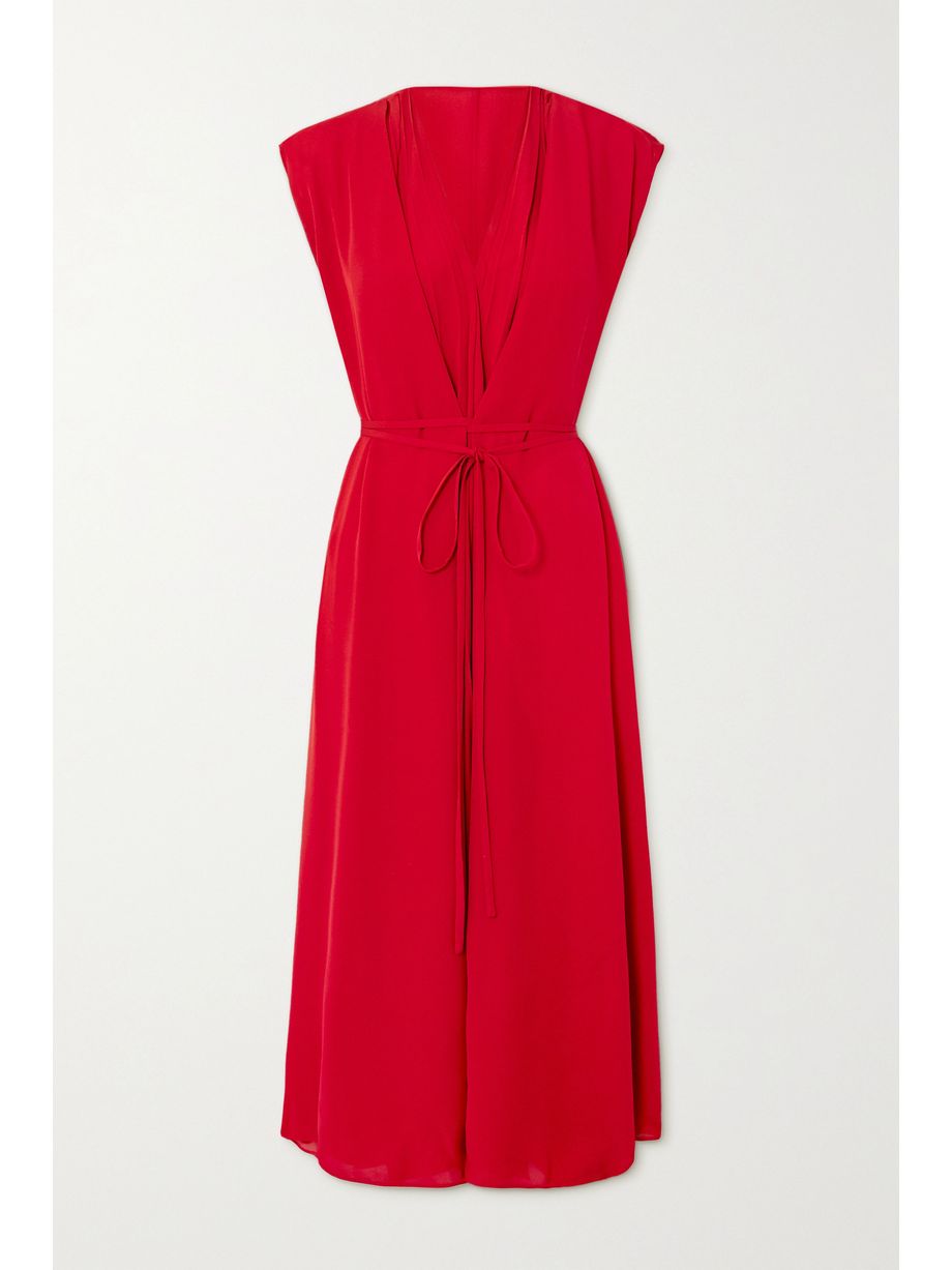 Tie-detailed pleated silk-georgette midi dress