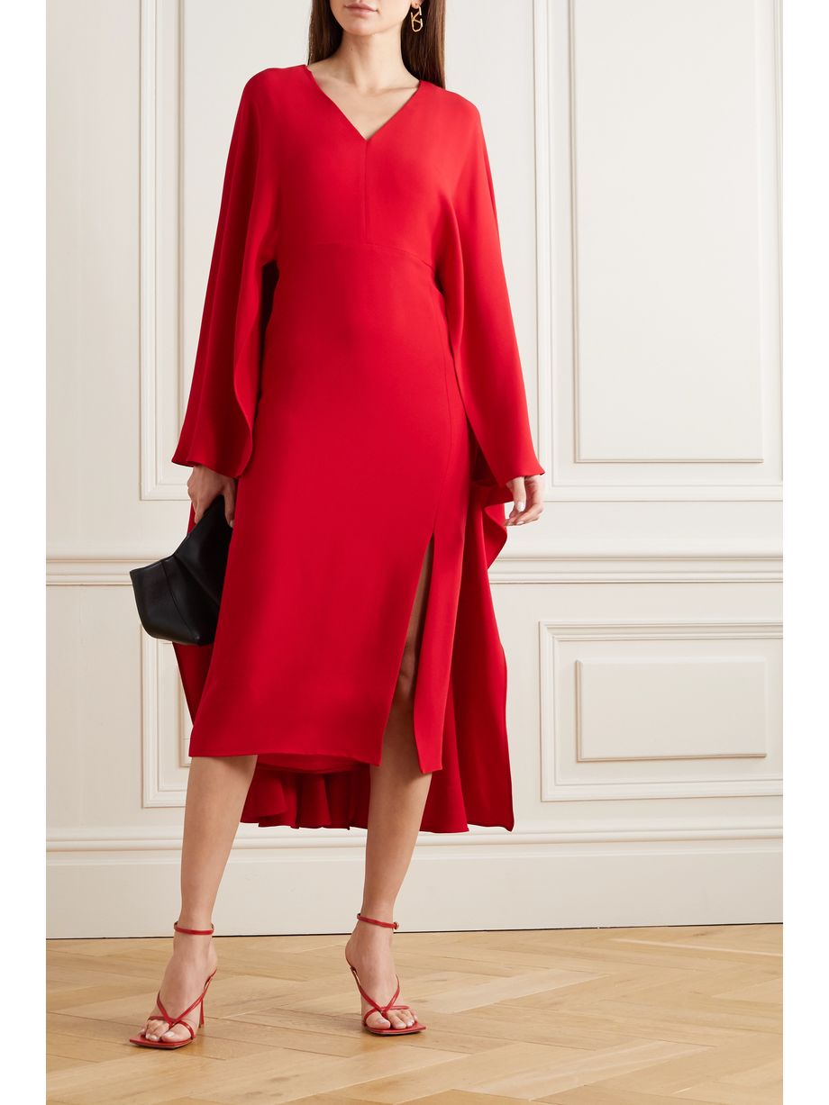 Cape-effect silk-crepe midi dress