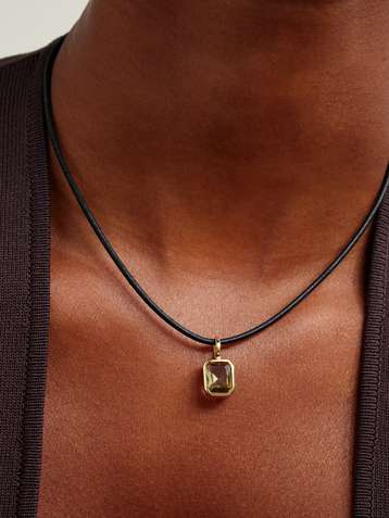 Orbit Prism 14-karat recycled gold, leather and quartz necklace