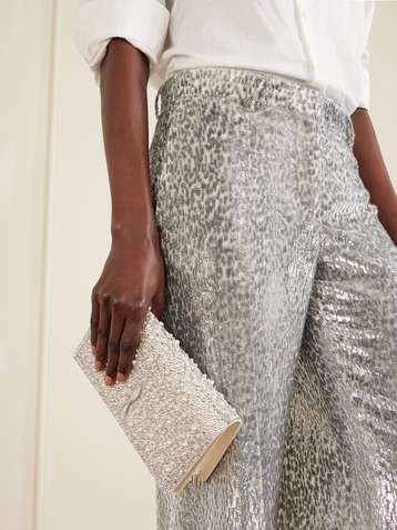 Loubi54 embellished metallic cracked-leather shoulder bag