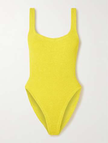 Originally established in the ‘80s, Hunza G became famous for a cutout mini dress Julia Roberts wore in Pretty Woman. Relaunched 30 years later under Creative Director Georgiana Huddart, this London-based brand makes swimsuits and bikinis from a sculpting seersucker fabric that’s a collection signature.