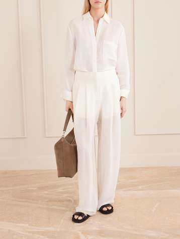 Carries linen and silk-blend wide-leg pants