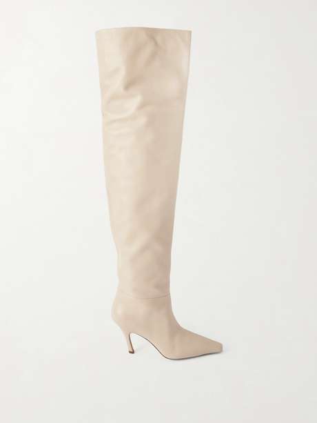 The over-the-knee profile of Amina Muaddi's 'Jamie' boots looks so chic with mini skirts and leggings. Crafted in Italy from supple leather, they have sleek pointed toes and rest on slanted heels that offer 80mm of lift.