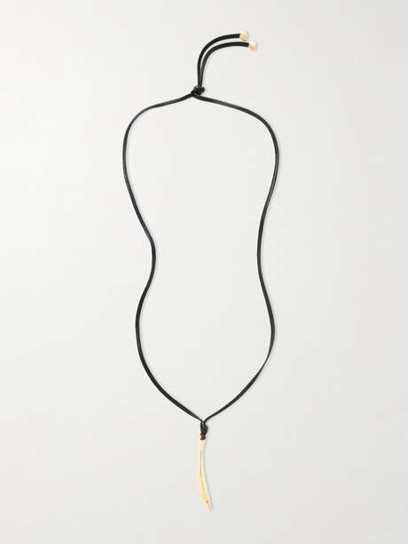Bottega Veneta's necklace is strung with a curved pendant that nods to the sculptural top handle of its 'Sardine' bag. It's made from soft leather and has adjustable gold-plated tipped ties for versatile styling.