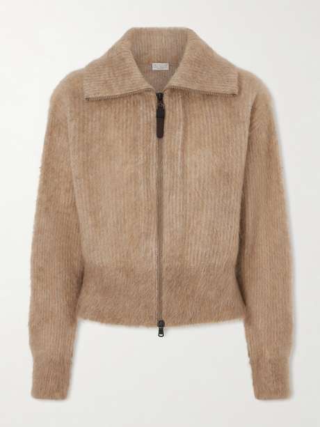 BRUNELLO CUCINELLI Ribbed brushed-knit zip-up cardigan