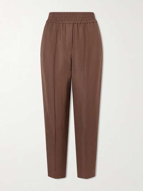 Brunello Cucinelli's pants look smart and are comfortable to wear. Woven with touches of breathable linen, they have an elasticated waistband and tapered legs traced with pressed creases and tonal stripes. The cropped hems ensure any footwear works.