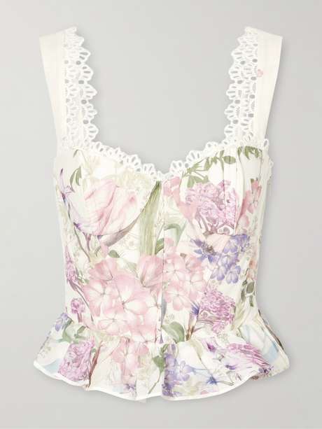 Charo Ruiz’s 'Floret' top blends corsetry with floral prints. Made from cotton-blend, it has a structured bodice supported by boning and a sweetheart neckline trimmed with broderie anglaise. Style yours with a ruffled skirt and heeled sandals.