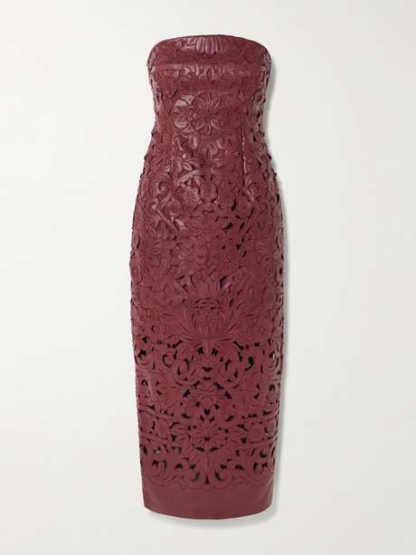 Cult Gaia's 'Raylene' dress has been spotted on Meghan Markle, whose minimalist styling highlighted its sculptural beauty. Designed in a strapless, close-fitting silhouette, it's made from synthetic fabric embroidered with delicate florals and detailed with artful cutouts that reveal subtle glimpses of skin.