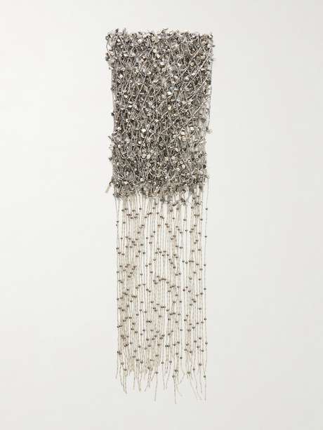 You'll want to zoom in to appreciate the intricate details of Dries Van Noten's scarf. Designed for those that love the art of dressing up, it's crafted from a latticework of beads, sequins and glinting crystals with swishy fringed ends.