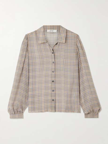FRAME focuses on quality fabrics and timeless staples, as demonstrated by this shirt, which is made from fluid silk-chiffon. It has a checked pattern in neutral colors and a pointed collar. Wear yours on its own or layered over a tank top with your favorite jeans.