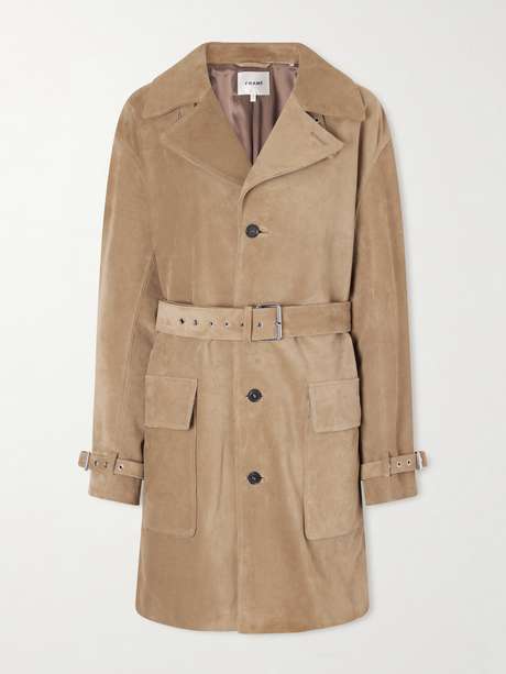 FRAME's trench coat is cut from plush suede, so it feels really luxe. It's tailored with adjustable cuffs, a buckled throat latch and two square patch pockets at the hips.