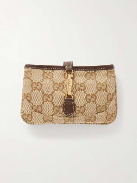 GUCCI Jackie leather-trimmed canvas-jacquard wallet