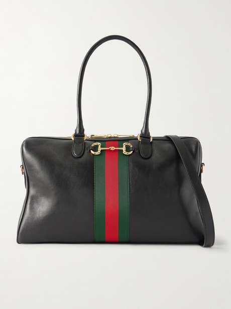 GUCCI Borsetto large webbing-trimmed textured-leather shoulder bag