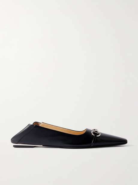 GUCCI Vittoria collapsible-heel horsebit-embellished leather ballet flats