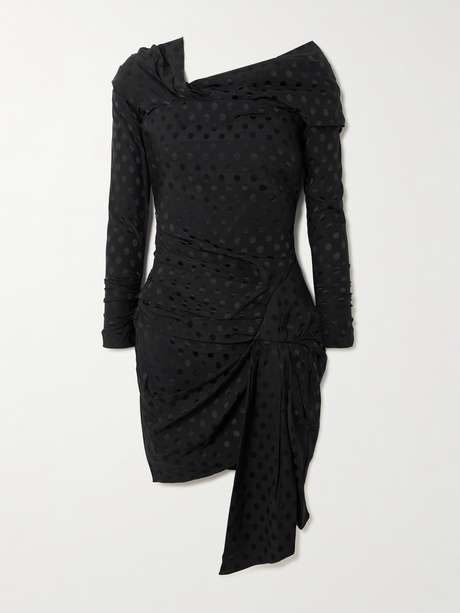 Isabel Marant's 'Elara' dress is made from stretch-silk patterned with tonal polka-dots. Designed in an asymmetric shape, it falls low on one shoulder and lands on a draped mini hem. Take cues from the label and accessorize with a belt and boots.