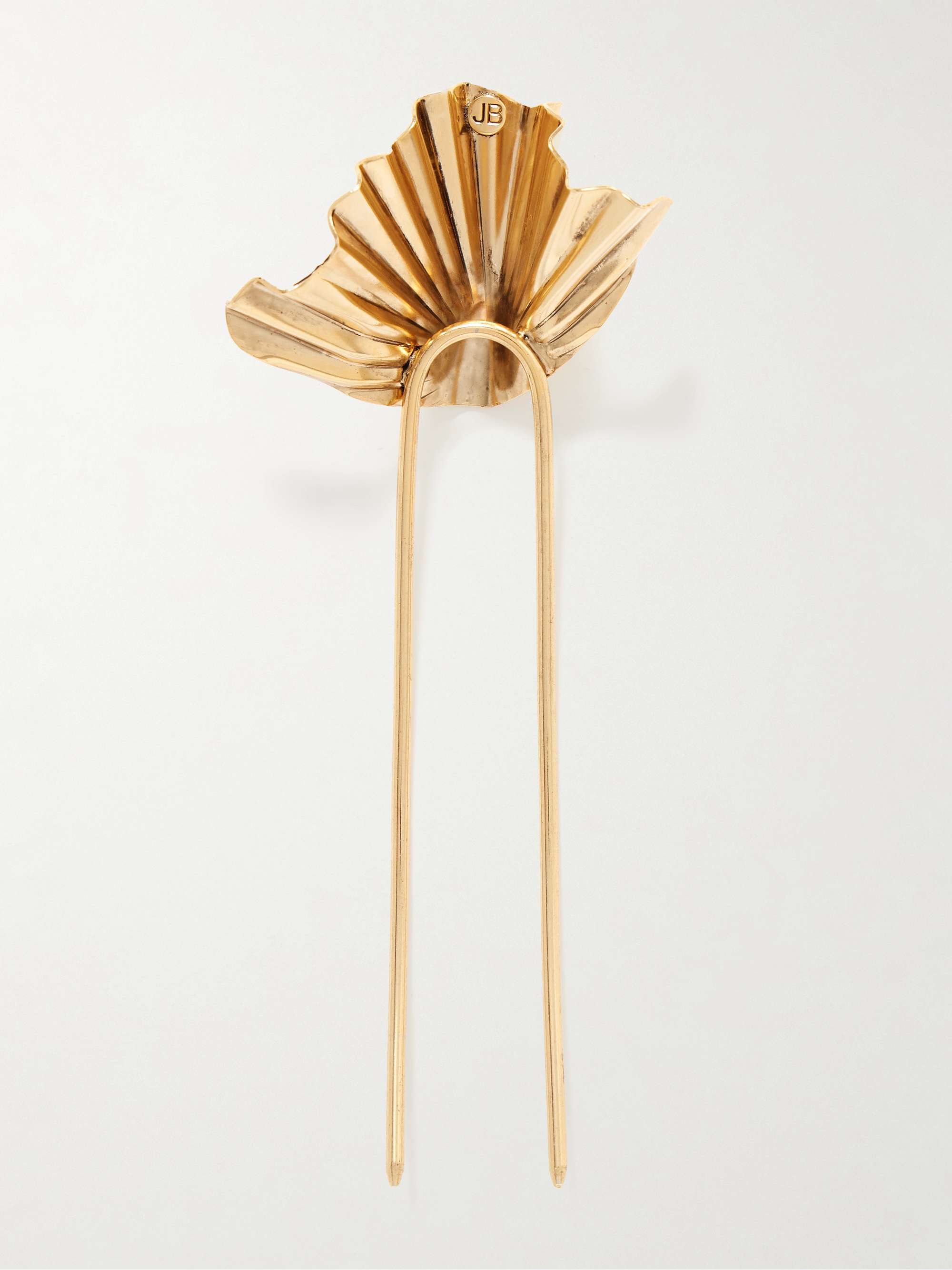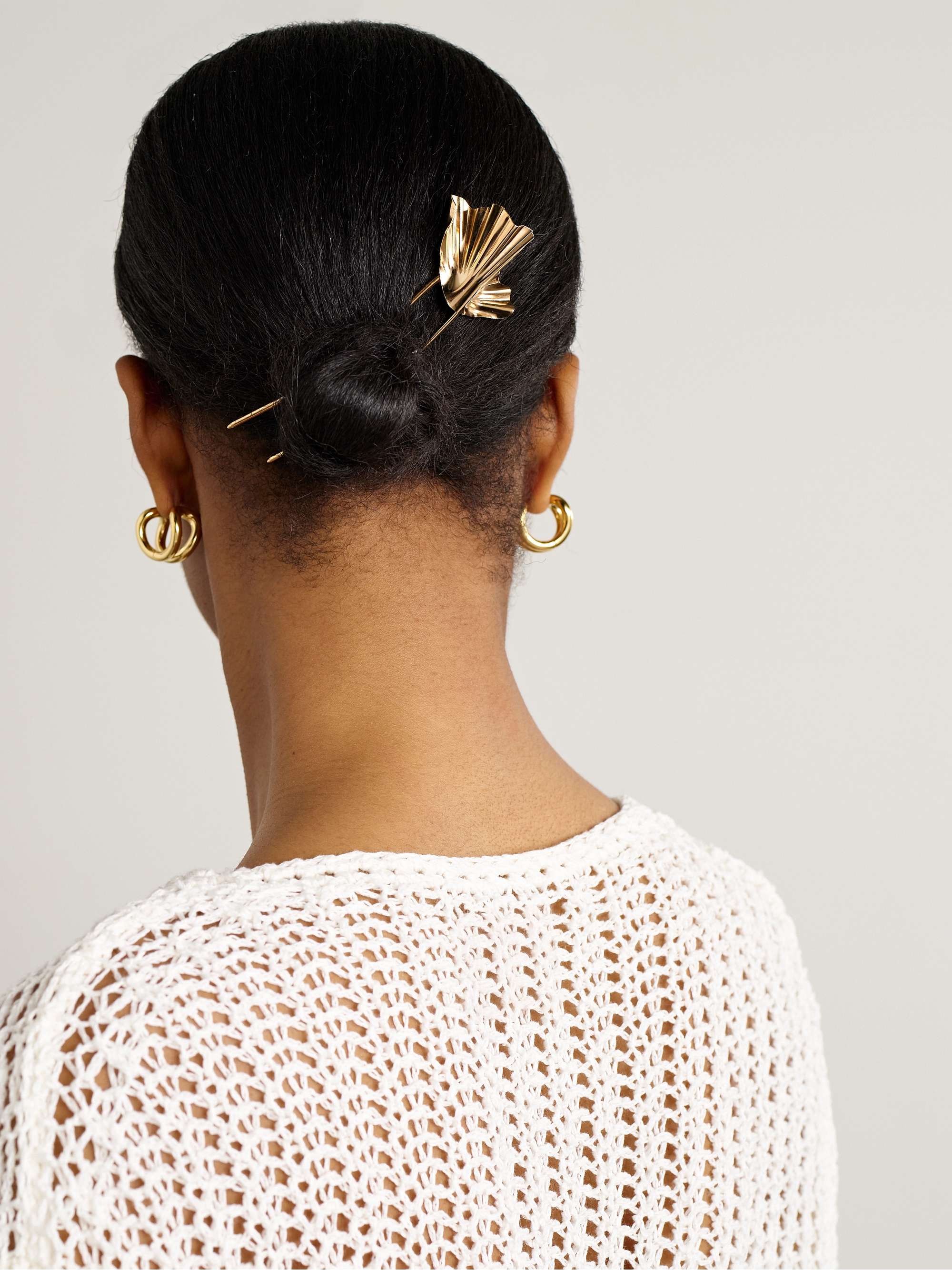 Jennifer Behr's 'Danu' hair slide features a sculptural pendant with a rippled texture, inspired by the surface of water. Handcrafted in the brand's New York studio from gold-plated brass, it will add a sleek finish to any hairstyle.