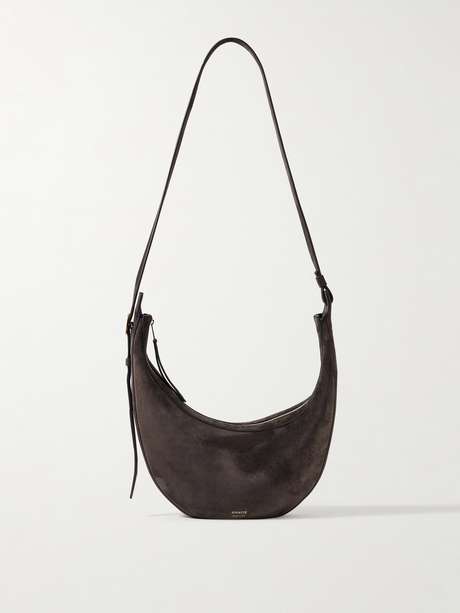 KHAITE's small 'Augustina' bag is designed in a distinct, arching shape that gives it plenty of interest. It's made from suede that's stamped with the logo and has a lined interior with space to fit your phone, cardholder and keys.