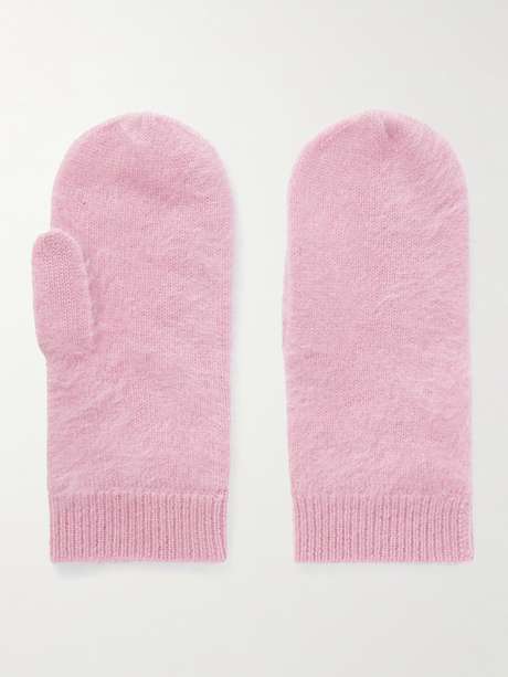 Lisa Yang's mittens are knitted from ultra-soft brushed-cashmere in a 'Petal' pink shade. The ribbed trims ensure they slip on with ease.