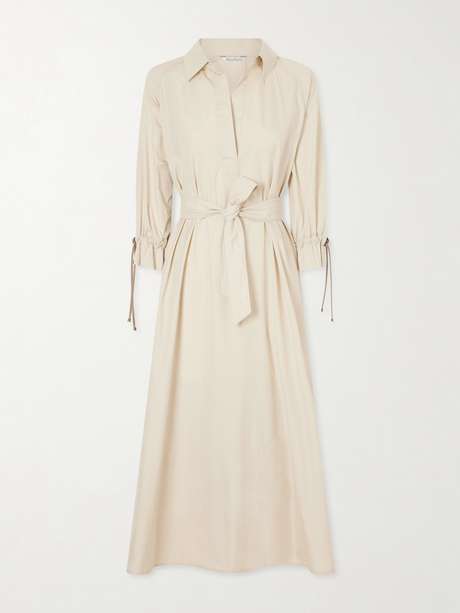 Max Mara's dress strikes the balance between bold and effortless. Made from beige cotton-poplin, it has a floaty shape with cropped sleeves that are tempered by ties through the cuffs. Lift the midi hem with platform espadrilles.