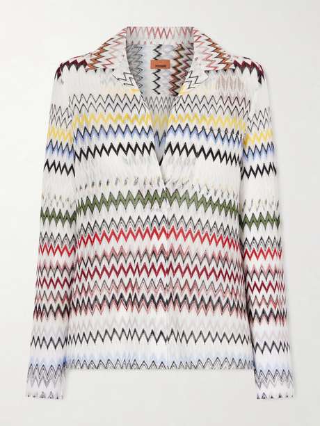 Missoni's blouse is patterned with the house's iconic zigzag stripes in vibrant colors that act as sartorial serotonin. Cut to a neat, slim fit, it's made from airy crepe and finished with a spread collar.