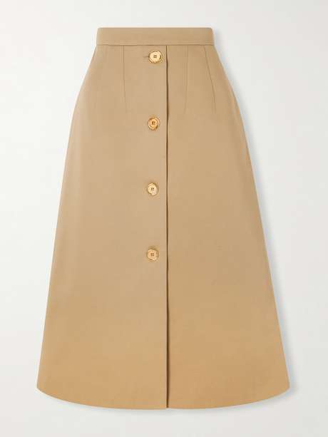 Patou's skirt is effortlessly classic. Tailored from cotton-twill, it's defined by a darted waist that flares to an elegant A-line hem. Match your jewelry to the gleaming gold-tone buttons.