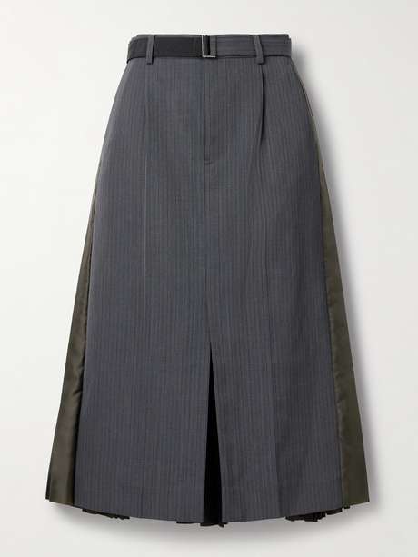 No one does experimental design quite like Sacai. This midi skirt is cut from striped woven fabric with a pleated satin-twill panel at the back. It's fully lined and has an adjustable, waist-cinching belt.