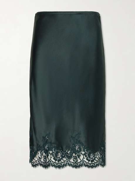 SAINT LAURENT Lace-trimmed silk-satin skirt