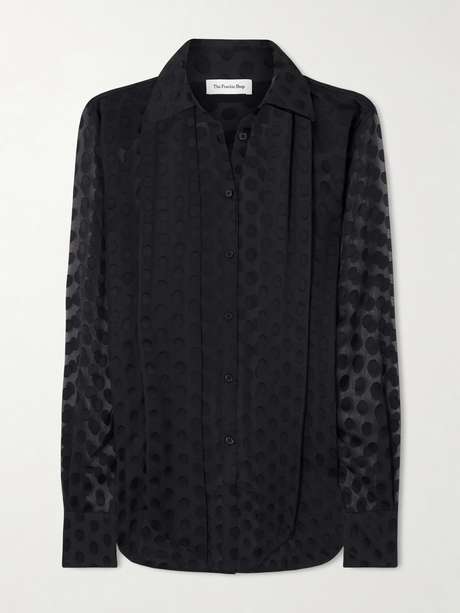 We love The Frankie Shop's chic, tonal take on polka-dots in this 'Solana' shirt. Tailored from sheer chiffon, it's cut for a loose profile that hangs elegantly on the frame. The pussy-bow ties can be knotted or left to trail.