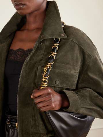 Hip Large logo-detailed leather-trimmed suede bucket bag