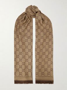 GUCCI+ NET SUSTAIN Sten reversible fringed organic wool-jacquard scarf