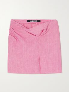 Cutout draped linen mini skirt