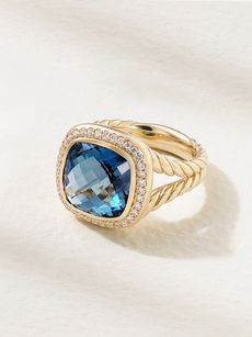 Jewels for sultry summer evenings should deliver a dose of drama. Think diamond drops such as Shay’s pear-shaped 18-karat gold earrings, which are ideal for accenting silk slip dresses or a bandeau neckline. “Diamonds really come alive under candlelight, so don’t be shy about stacking,” says Johnston. “A tennis necklace is a staple, but consider contemporary alternatives, such as Suzanne Kalan’s ‘Fireworks’ designs, which swap round stones for striking baguette cut diamonds.” Colored gems can also reign supreme after daylight dips. “Bold stones like tsavorites, spinels or tourmalines, which are more affordable than sapphires, rubies and emeralds, allow you to really play with size and impact,” she notes. “David Yurman’s ‘Albion’ ring, with its striking blue topaz, is a summer-evening essential – and no sunset soirée is complete without a knock-out cocktail ring.” The most important rule when choosing jewels for occasion dressing? “Always choose the ones that bring you joy,” says Johnston. “Then you simply can’t go wrong.”