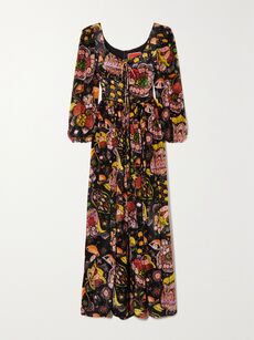 Wanderlust lace-up floral-print devoré-velvet maxi dress