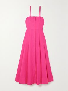 Elsewhere, with its vibrant floral print and beach-inspired shell belt, Zimmermann’s ‘Pattie’ dress embodies playful summer style. Whether you have a vacation on the horizon or a big event to attend, this is a piece you can bank on to see you through this summer – and many more to come – in style. Just as colorful and bright is Isabel Marant’s pink and purple printed maxi. Go for bold and style it with strappy sandals in a pop of orange when the temperature climbs. Come fall, you can wear it with ankle boots for added style mileage, too.