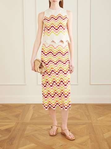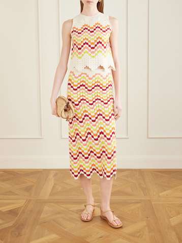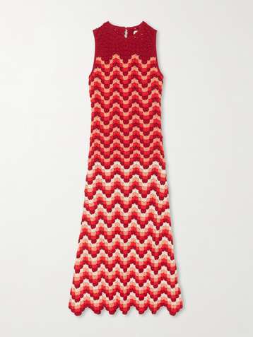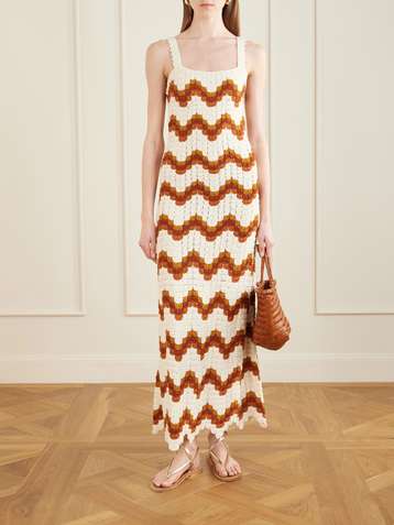 Founded by sisters Chiara and Giuliana Macchiavello, ESCVDO is rooted in a 'deep-seated' appreciation for Peru's textile heritage and traditions. The brand employs local artisans across the country, shining a spotlight on their talent for knitting, weaving and embroidery - all achieved entirely by hand - and takes steps to ensure its fabrics are traceable and responsibly sourced. Don't miss the crocheted maxi dresses in traditional Andean colorways.